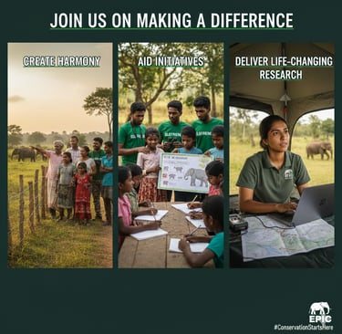 We harness research to understand both elephants and the people who share their landscapes. Using this knowledge, we develop innovative solutions to reduce human-elephant conflict. Our mission brings together communities, authorities, businesses, professionals, and academics to create lasting impact—together.